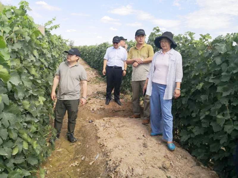 8月13日下午,中法合營王朝葡萄釀酒有限公司總經(jīng)理李廣禾一行蒞臨皇臺(tái)酒業(yè)進(jìn)行了參觀,并不辭辛勞,趕赴皇臺(tái)葡萄基地進(jìn)行觀摩。