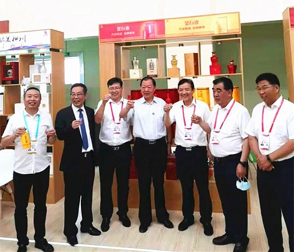 蘭洽會上,與會領導在皇臺酒業(yè)展臺前合影