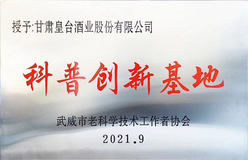 9月17日上午10點(diǎn),武威市老科學(xué)技術(shù)工作者協(xié)會(huì)在皇臺(tái)酒業(yè)綜合樓四樓會(huì)議室舉行科普創(chuàng)新基地授牌儀式。