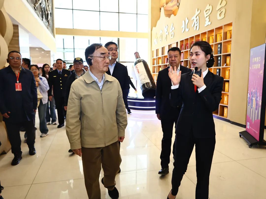 領(lǐng)導(dǎo)一行在皇臺酒業(yè)展臺前了解皇臺酒