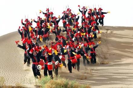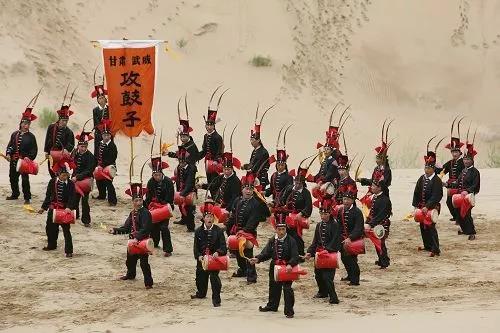 涼州攻鼓子的表演風(fēng)格渾厚而豪邁,給人以威武雄壯、粗獷豪放的美感,具有強烈的西部特色。